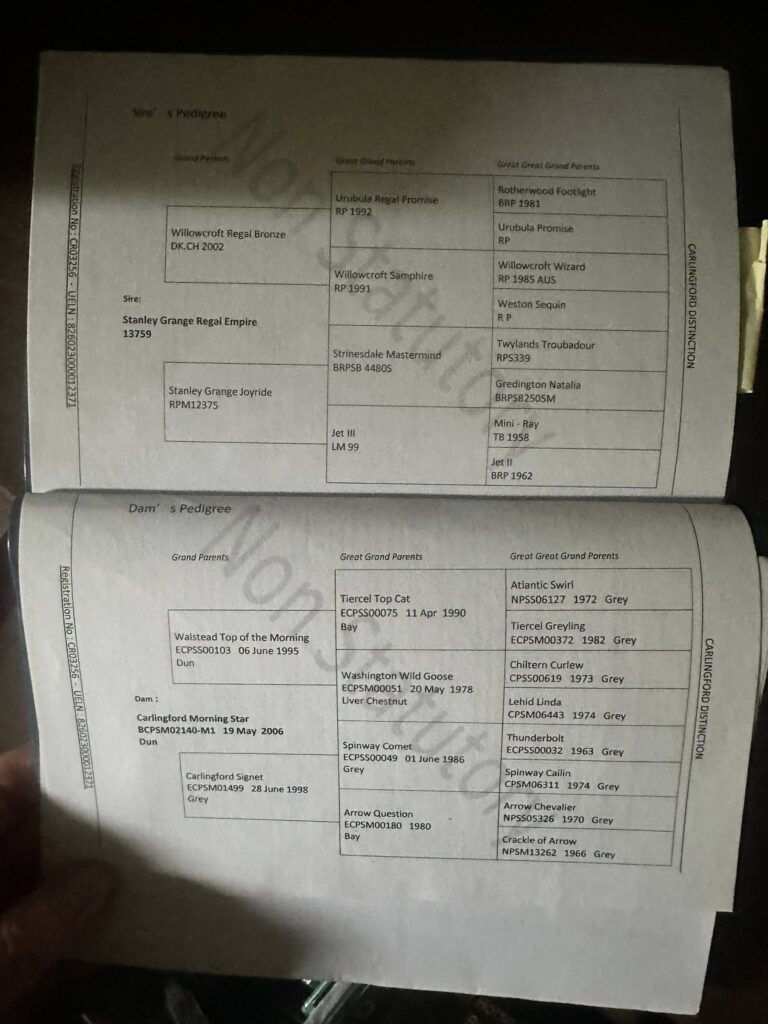 His grandsire is the well known stallion Willowcroft Regal Bronze who is the sire of multiple HOYS winners. Roger has certainly taken the moves from this sires Side. He Moves beautifully, naturally balanced, athletic, and floats across the ground.